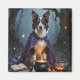Entrar en una mágica noche de Halloween con esta pintoresca pintura al óleo con un adorable cachorro vestido con un mini manto de bruja, sentado al lado de un caldero burbujeante en un oscuro bosque. Rodeada de pociones brillantes, antiguos libros de ortografía y brillantes chispas mágicas, la escena está llena de misterio y encanto. Las ricas texturas de pintor y los profundos tonos de Halloween crean una acogedora atmósfera encantada perfecta para los amantes de la temporada espeluznante.