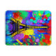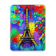 Una representación colorida y vibrante de la Torre Eiffel en París, Francia. La imagen es una mezcla de realismo y arte abstracto, siendo la Torre Eiffel el el punto central. El fondo está lleno de colores vivos y formas geométricas.