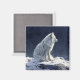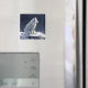 Un hermoso zorro ártico blanco sentado en un maravilloso terreno con nieve, una escena serena capturada en una pintura al óleo en un imán pintoresco. Perfecto para decorar la cocina de un amante del zorro.