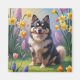 Imán Pintura de las flores de primavera del perro lapfi