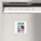 Elegante cuadro abstracto de Santorini Grecia en un imán con una arquitectura única y vistas a la costa de la isla griega. Un gran recuerdo y una idea de regalo.