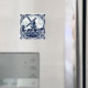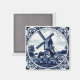 Delft, pintura azul de azulejos de molino de viento en segundo plano, con agujeros en el campo en primer plano. Incluye bordes de esquina floral y marcos.
