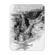 Dibujo pirata de libros de ilustracion blanco y negro. Un diseño de cuento de hadas en el que aparece un capitán pirata con una bandana caminando por las olas poco profundas del océano hacia la orilla de la playa. Del libro, Sir Henry Morgan, Buccaneer, 1903.