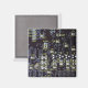 Un imán de frigorífico que incluye una placa de circuito impreso con componentes electrónicos etiquetados: resistores, condensadores, transistores. Un arreglo estético con colores contrastantes de una placa de circuito negro y componentes en tonos plateados etiquetados en amarillo. Este diseño aparece en una serie de regalos para los que tienen interés en la electrónica, los aparatos o una forma de arte que atraerá la atención y el interés. Ideal para su uso en casa u oficina, en el laboratorio o en fiestas. Fácil de personalizar. Utilice el botón Ti Personalizar para personalizar completamente el diseño y agregar texto si lo desea. Regalos de diseño de placa de circuito integrado más coloridos