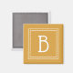 Agrega un toque de personalidad a tu refrigerador, oficina en casa o dormitorio con este imán cuadrado que presenta una inicial monogramada de una sola letra. La plantilla fácil de usar te permite crear tu propia letra personalizada colocada sobre un fondo amarillo dorado vibrante. Puedes personalizar aún más cualquiera de los colores en el área de la herramienta de diseño. El diseño lindo es simple y básico con dos marcos cuadrados alrededor de la inicial. Ya sea que desees deletrear tu nombre, iniciales o una palabra, este imán es una forma única y divertida de expresarte. Este imán también es un regalo excelente para él o ella, para cualquier ocasión.