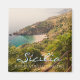 Revista fotográfica de recuerdo con la playa vacía y aislada de Tonnarella dell'Uzzo en la rocosa costa norte de Sicilia, en el Parque Nacional Lo Zingaro, entre Scopello y San Vito Lo Capo, bañándose a la luz nebulosa de la mañana con el texto "Riserva dello Zingaro, Sicilia".
