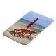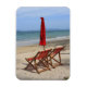 Paraguas rojos y dos sillas en la playa tropical de Tailandia