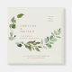 Boda de acuarela botánica moderna Salva la fecha. Cuadrada. Texto dorado. Imán. Fondo crema.