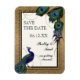 COLOR PALETTE: COLECCIÓN DE DISEÑO negro, dorado "metálico", azul y verde: Esta elegante y formal boda de pavo real y plumas de pavo real Salven el imán de fecha es simplemente impresionante. Presenta obras de arte de pavo real de época, diseñadas por Audrey Jeanne Roberts, personalizado, y se ha añadido a su propia obra de arte original para crear un diseño de gama alta. El pavo real tiene hondos blues reales, zafiro o cobalto, agua y verde con resaltar negro. En el lado de texto de la invitación hay un borde de marco de punto dorado con una capa metálica dorada que tiene un patrón de damasco color agua a mano. El pavo real y las plumas se asientan en las torres doradas para dar un toque moderno y moderno. En el lado inverso hay un par de pavos reales sentados sobre un torbellino dorado adornado con ráfagas en el fondo y un borde de puntos dorados y rayas negras sobre el fondo del damasco metálico dorado.