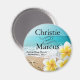 El personalizable "Plumeria Starfish Beach" de la bonito gira alrededor del imán. Para preguntas y solicitudes, envíe un correo electrónico a glamprettyweddings.com/contact. Están disponibles las invitaciones a bodas coincidentes, guardar las fechas, franqueo, pegatinas redondos y cuadrados, tarjetas RSVP y más. Diseño original de "Plumeria Starfish Beach" de Cheryl Daniels © 2013.