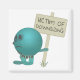 Un triste Plutón se para mientras sostiene un cartel que dice "Víctima de la reducción de tamaño". Plutón es verdaderamente muy triste. :(