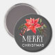 Diseño de imanes temáticos de Navidades festivos y rústicos con ilustracion acuático de poinsettia con vegetación invernal. El texto dice "Feliz Navidad" en letra con letras a mano.