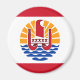 Bandera de la Polinesia Francesa. La bandera de la Polinesia Francesa se adoptó en 1984. Dos bandas horizontales rojas encajan en una banda ancha de color blanco; centradas en la banda blanca hay un disco con un patrón de olas azul y blanco que representa el mar en la mitad inferior y un patrón de rayas doradas y blancas que representa el sol en la mitad superior; una canoa polinesia recorre el patrón ondulado; la canoa tiene una tripulación de cinco estrellas representada por cinco que simbolizan los cinco grupos de islas; los colores polinesios rojos y blancos tradicionales.