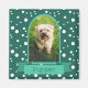 Enmarcar una foto vertical de su mascota en un marco clásico de arco en verde azulado con un cartel para su nombre. El fondo son los puntos de polka blancos en verde azulado.