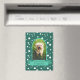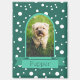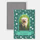Enmarcar una foto vertical de su mascota en un marco clásico de arco en verde azulado con un cartel para su nombre. El fondo son los puntos de polka blancos en verde azulado.