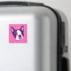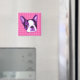 Vestir tu frigorífico con una cabeza de cachorro morada del Boston Terrier sobre un fondo rosado de polka dot!