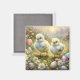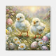 Imán Pollitos en un prado con huevos de Pascua, cosecha