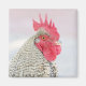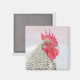 Nuestro imán ofrece una vista de primer plano de un Pollo de Plymouth Barred. Estos pollos tienen morada en blanco y negro. Son dóciles y fáciles de manejar, perfectas para tu cocina. Nuestro pollo tiene un peine rojo y un pico amarillo.