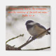 Un pequeño y alegre pollito se sienta en un árbol y llama a su nombre: Chick-a-dee-dee-dee. Mensaje: "Sé que todos los pájaros en las montañas, y las criaturas del campo son mías". Salmo 50:11