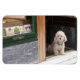 no estoy seguro de si realmente es un perro caniche o alguna otra raza, pero es muy bonito - sentado a la puerta de una librería de época en viena, austria