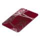 Estilosos dibujos en línea pintados a mano en blanco y gris de adornos en un fondo rojo oscuro.