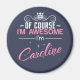 Por supuesto, soy alucinante, soy Caroline - con sans mixtos blancos y rosas y letras cursivas con adornos de pergamino blanco y corona una corona blanca. El nombre se acentúa con estrellas blancas.