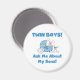 A la orgullosa nueva madre y padre de los bebés mellizos les encantará este lindo diseño que incluye dos conejitos de niños y texto azul que dice "¡Niños gemelos! ¡Pregúntame Por Mis Hijos!" Camisetas gemelas, tarjetas, botones, imanes, bolsas, ratones y otros!
