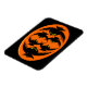 Este imán increíble presenta un óvalo naranja con seis cuervos dentro. Cada cuervo tiene ojos amarillos con pupilas negras y alas extendidas. Los cuervos vuelan hacia el otro formando una forma ovalada. El fondo es negro.