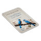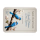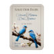 Anuncie su próximo día de bodas para la familia y los invitados con un Bluebirds Salve the Date Magnet. El diseño del imán presenta un par de pájaros planos que descansan sobre una rama de madera con flores de primavera sobre un fondo de papel texturado. Personaliza con los nombres del novio y la novia junto con la fecha del boda. También hay artículos de papelería y regalos adicionales para bodas disponibles con este diseño.