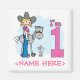 Primer cumpleaños lindo país occidente / vaquero / rodeo tema vaquero vaquero en jeans y bandana rosa con caballo y gato, gran número rosa 1.