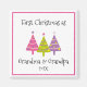 La primera Navidad como abuela o abuelo es una experiencia inolvidable. Celebren con este imán adorable con árboles de Navidad rosas, púrpura, amarillos y verdes. Puedes reemplazar el texto "abuela y abuelo" si quieres dárselo a una nueva tía, hermana o a cualquier otra persona que quieras.