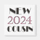 2024 texto rosa y negro Nuevo primo diseña tazas, bolsas de té, camisetas, imanes y más para el primo nuevo de una niña nacida en 2024.