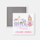 princesa bonito de color rosa con unicornio y rana coronada con texto que dice 'Hermana Grande'. Tiene diseños de hermanita y hermanita media.