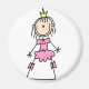 Una figura de palo en un vestido de bola rosa en un imán de la figura de la realeza del personalizable.