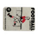 Logo de un jugador de un programa de fútbol de la época de un famoso futbolista pateando una pelota de cuero.