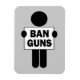 Este diseño muestra a un manifestante sosteniendo un cartel con armas de prohibición.