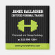 Un audaz imán promocional para entrenador personal, propietario de gimnasio o entrenador. Una silueta de un campanario verde se destaca sobre el rico fondo negro de la piinstripe. Su información de contacto principal se muestra a continuación con su sitio web u otra información destacada en la barra verde lima de la parte inferior. Disponible en colores alternativos con productos coincidentes. com