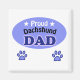Trotse Dachshund (hond) vader. se encontró hasta groot blauwe circel en 2 agujeros con 2 hondas. Toon uw liefde van dit hondenras.