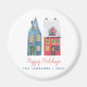 Imán Pueblo de casas de invierno lindas navidad azul ro