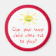 Comparte un poco de humor con este divertido imán que dice "Puede tu hijo interior salir a jugar" con un divertido sol sonriente y escritura de lápices.