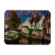 Pintura del puente Bonifacius y casas medievales en el casco antiguo de Brujas, Bélgica.