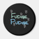 Fudge Pudge tarjetas de felicitación vacacional, camisetas, tazas, bolsos de té y otros artículos de Fudge Pudge con texto azul y verde y copos de nieve, lindo y divertido para las vacaciones, perfecto si te gusta el fudge!