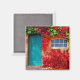 Imán Puerta turquesa panorámica con hojas de otoño vívi