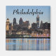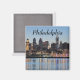 Este es el hermoso paisaje de la ciudad de Filadelfia, tomada al atardecer desde el otro lado del río Delaware en la costa de Camden. La arquitectura de los rascacielos de Filadelfia se muestra en esta foto. El centro de la ciudad, el área centro de Filadelfia, es el foco de esta fotografía. Las luces de la ciudad proyectan coloridas reflexiones sobre el agua.