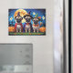 Escena divertida de Halloween con un pequeño y travieso cachorro mirando desde una calabaza tallada, rodeada de vibraciones de otoño espeluznantes y divertidas. Con un encanto descarado y colores otoñales, es el toque de humor perfecto para la temporada.
