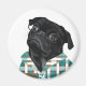 Imán Pug Negra Adorable Con Gafas Y Camisa
