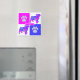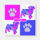 Imán Pug Silhouette Dog & Paw Pink and Blue Square