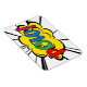 La forma de explosión de los efectos sonoros de historietas con el colorido texto "¡Pow!".