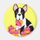 Dulce perro caprichoso de Boston terrier con pasteles rosados