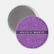 Cute, girly, trendy, faux purple glitter graphic pattern background with a dark purple and white stripe nameplate featuring a name template.